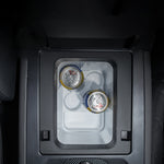Ausgestattet mit einem Becherhalter und einem Ablagefach, ermöglicht es die Sortierung und Aufbewahrung verschiedener Gegenstände. -
